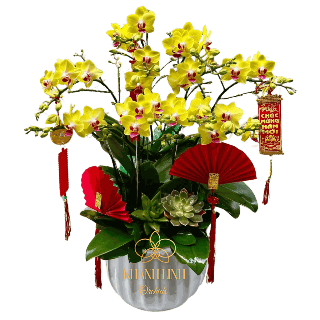 Mỗi đóa hoa và lá cây được chăm sóc kỹ lưỡng, thể hiện sự chất lượng và tinh tế. Sự chăm sóc đặc biệt này tạo nên một chậu hoa với vẻ đẹp lâu dài và ấn tượng. Chậu Hoa Lan Hồ Điệp Mini Vàng - Phúc Lộc Thọ không chỉ là một vật trang trí, mà còn là nguồn động viên, mang lại không gian tích cực và lạc quan cho mọi người xung quanh. Chậu Hoa Lan Hồ Điệp Mini Vàng - Phúc Lộc Thọ là biểu tượng của sự hạnh phúc và thịnh vượng, làm tươi mới và làm phong phú không gian sống.