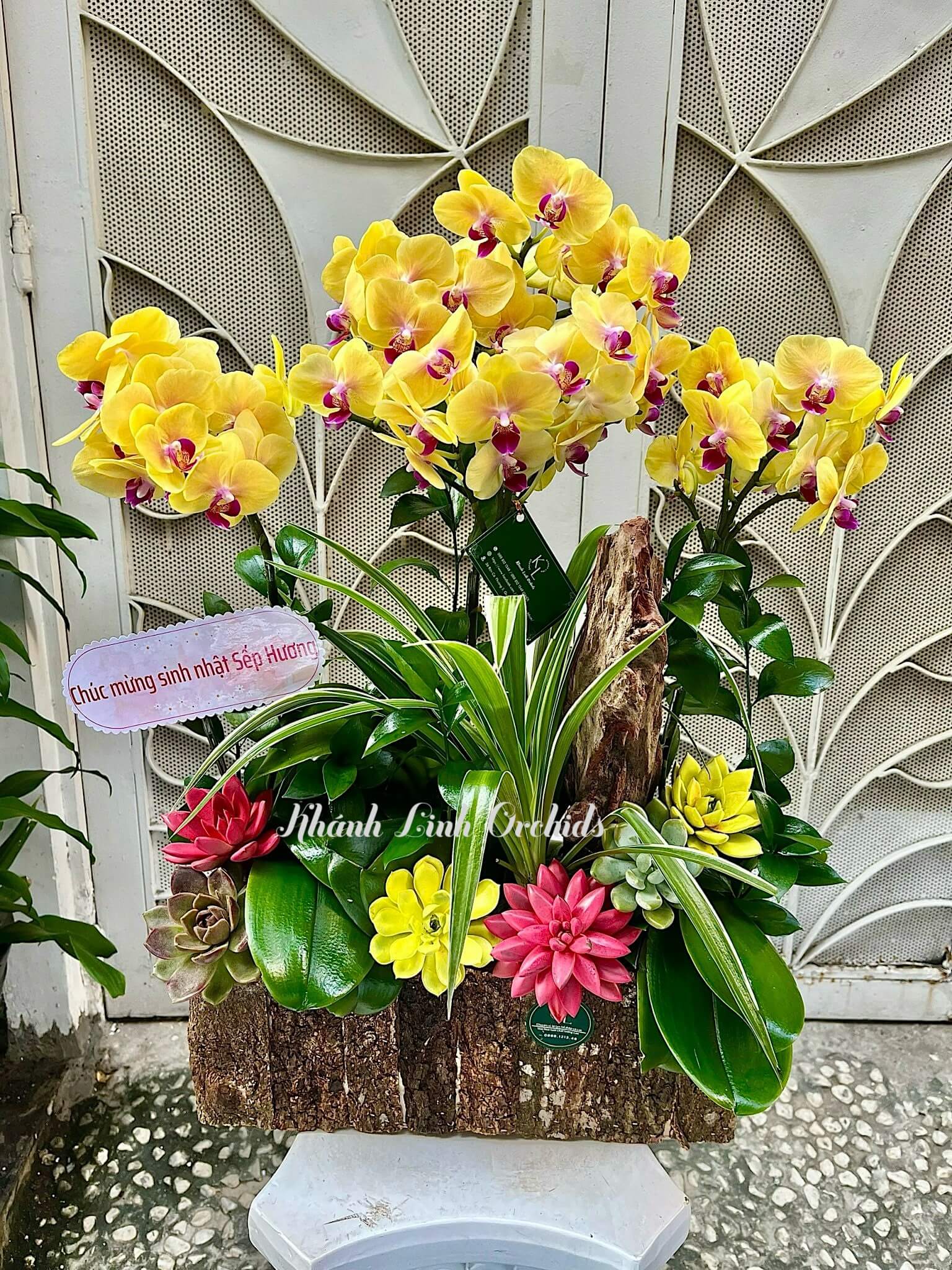 Chậu hoa lan hồ điệp Mini Vàng Tiểu Cảnh không chỉ làm tôn lên vẻ đẹp của hoa lan mà còn phù hợp cho nhiều không gian nhỏ, như bàn làm việc, bàn trang điểm hay kệ sách. Kích thước nhỏ gọn này giúp tạo điểm nhấn nhanh chóng và dễ dàng di chuyển. Chậu hoa không chỉ là một vật trang trí mà còn là một cảnh quan nhỏ mà đẹp mắt, tạo ra một góc nhỏ tinh tế và ấm cúng trong không gian sống. Chậu Hoa Lan Hồ Điệp Mini Vàng Tiểu Cảnh không chỉ mang lại vẻ đẹp của hoa lan mà còn là một sự kết hợp hài hòa và sáng tạo giữa nghệ thuật trang trí và trang trí tiểu cảnh.
