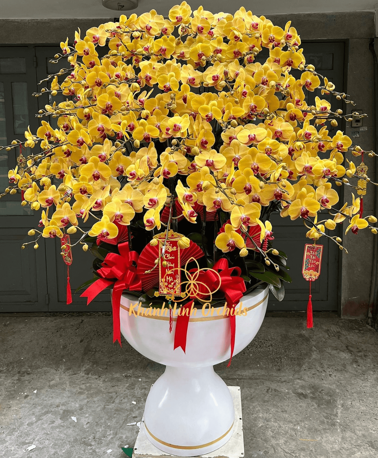 Màu vàng óng ả từ những bông hoa phản chiếu ánh sáng một cách lấp lánh, làm say đắm lòng người. Không chỉ là một sản phẩm được đầu tiên kỹ lưỡng, chăm chút từ những người thợ cắm hoa điêu luyện tại Hoa lan Khánh Linh, chậu Lan Hồ Điệp Vàng 50 Cành còn là biểu tượng của sự may mắn, thịnh vượng và hạnh phúc. Với mỗi cành hoa đều mang theo hy vọng và niềm tin vào một tương lai tươi sáng, nơi mọi ước mơ và khát vọng đều trở thành hiện thực.