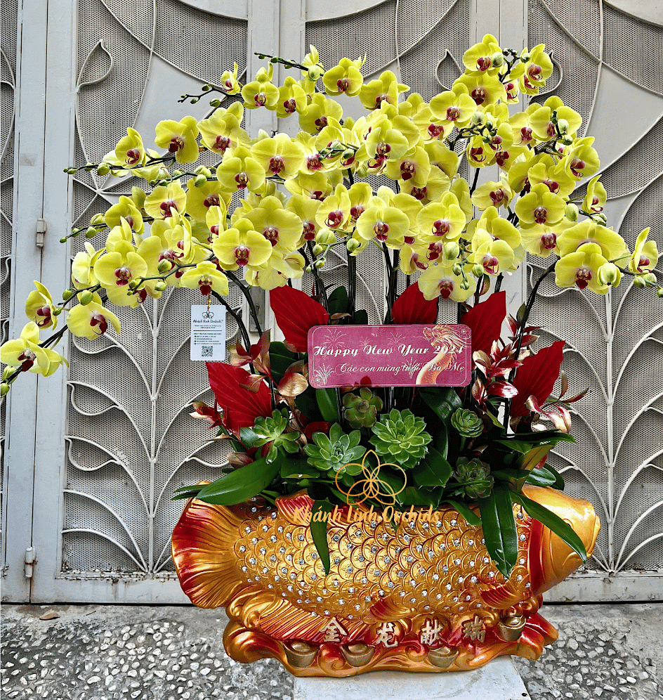 Chậu hoa Lan Hồ Điệp Cá Chép Vàng không chỉ là một sản phẩm trang trí mà còn là biểu tượng của sự quý phái và sang trọng. Từ chất liệu chậu, đến cách bố trí hoa và hình ảnh cá chép, tất cả đều thể hiện sự chăm chỉ và tinh tế trong quá trình mà công ty Hoa lan Khánh Linh tạo nên một tác phẩm. Nhìn vào chậu hoa Lan Hồ Điệp Cá Chép Vàng, người ta cảm nhận được sự tươi mới và năng lượng tích cực. Hoa lan hồ điệp nở rộ và cá chép vang lên như một biểu tượng của sức sống và hạnh phúc. Chậu hoa này không chỉ đẹp về mặt thị giác mà còn chứa đựng ý nghĩa sâu sắc về mặt văn hóa và tâm linh. Hợp nhất giữa lan hồ điệp và cá chép mang lại điều gì đó đặc biệt, thường liên quan đến sự phồn thịnh và may mắn.