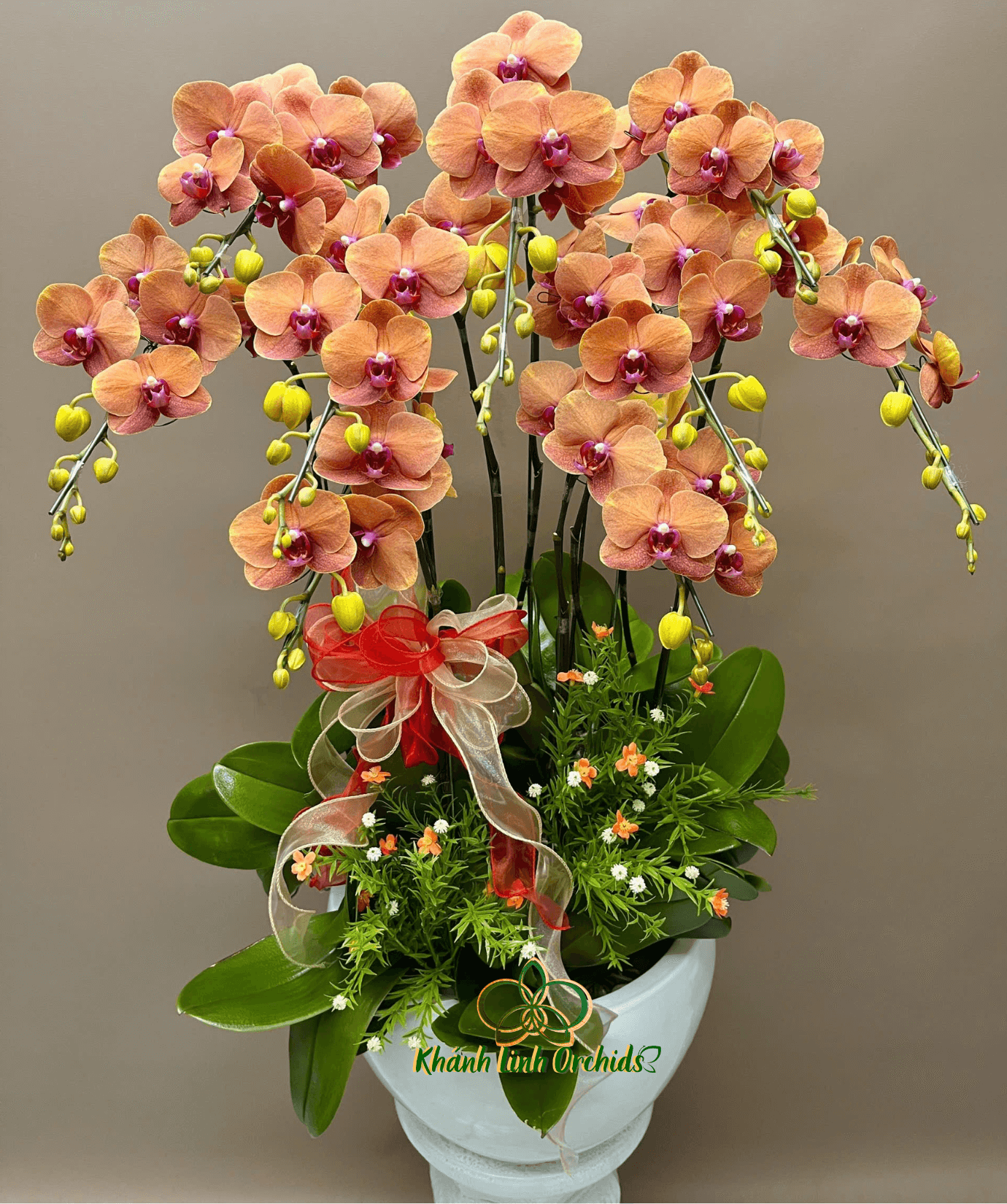 Sở hữu số lượng 9 cành – con số mang ý nghĩa cửu, tượng trưng cho sự lâu bền, gắn kết và phát triển vững chắc – chậu lan này trở thành món quà lý tưởng dành cho nhiều dịp đặc biệt như khai trương, tân gia, sinh nhật, kỷ niệm hay trang trí phòng khách, văn phòng, sảnh lễ tân để không gian thêm tươi mới và sang trọng.