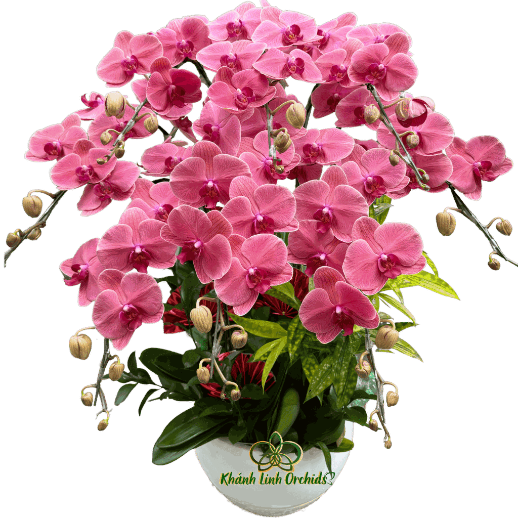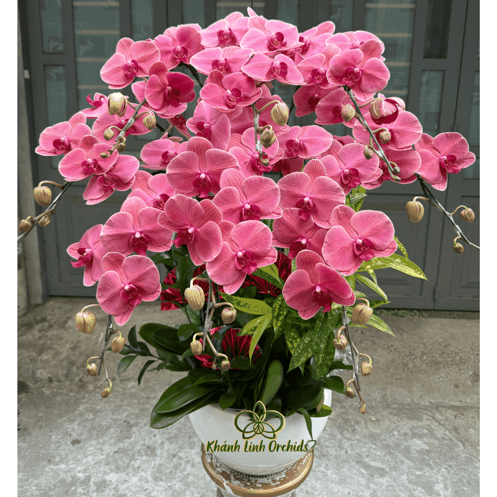 Với sắc đỏ cam nổi bật như ánh hoàng hôn rực rỡ, chậu lan hồ điệp đỏ cam 8 cành là biểu tượng của năng lượng, nhiệt huyết và sự thịnh vượng. Mỗi cành lan vươn mình kiêu hãnh, mang trên mình những cánh hoa căng đầy sức sống – vừa mềm mại, vừa mạnh mẽ, tựa như ngọn lửa ấm áp cháy trong tim người yêu cái đẹp.