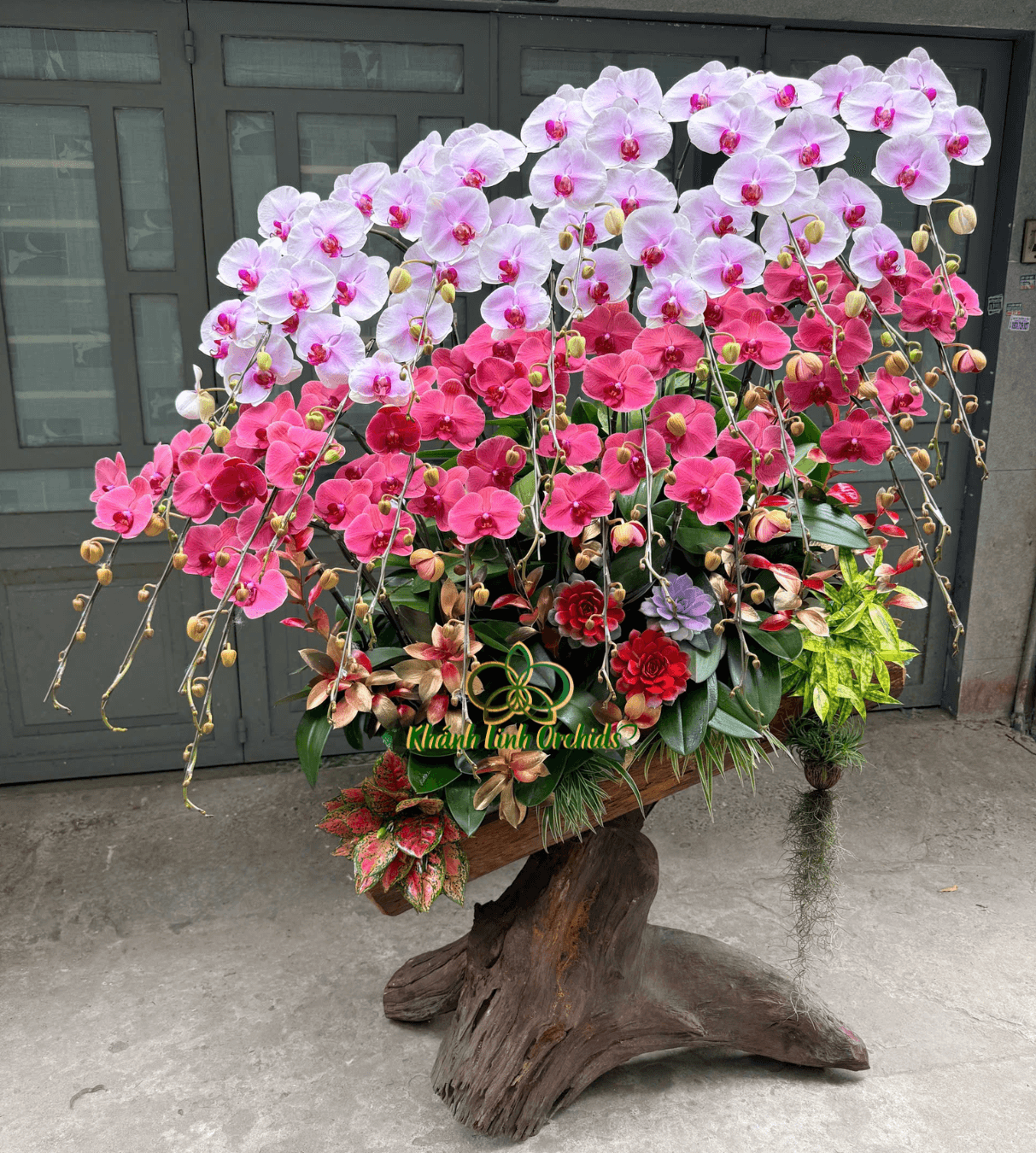 Với số lượng cành lớn, bố cục hoành tráng và ý nghĩa phong thủy tốt đẹp, chậu lan hồ điệp gỗ trắng loang hồng phối đỏ cam 25 cành là lựa chọn lý tưởng để trưng bày tại sảnh công ty, không gian tiếp khách, biệt thự hoặc làm quà tặng cao cấp trong các dịp khai trương, kỷ niệm, chúc mừng thành công. Không chỉ là một chậu hoa trang trí, tác phẩm này còn gửi gắm thông điệp về sự phát triển mạnh mẽ, may mắn và thịnh vượng lâu dài cho người sở hữu.