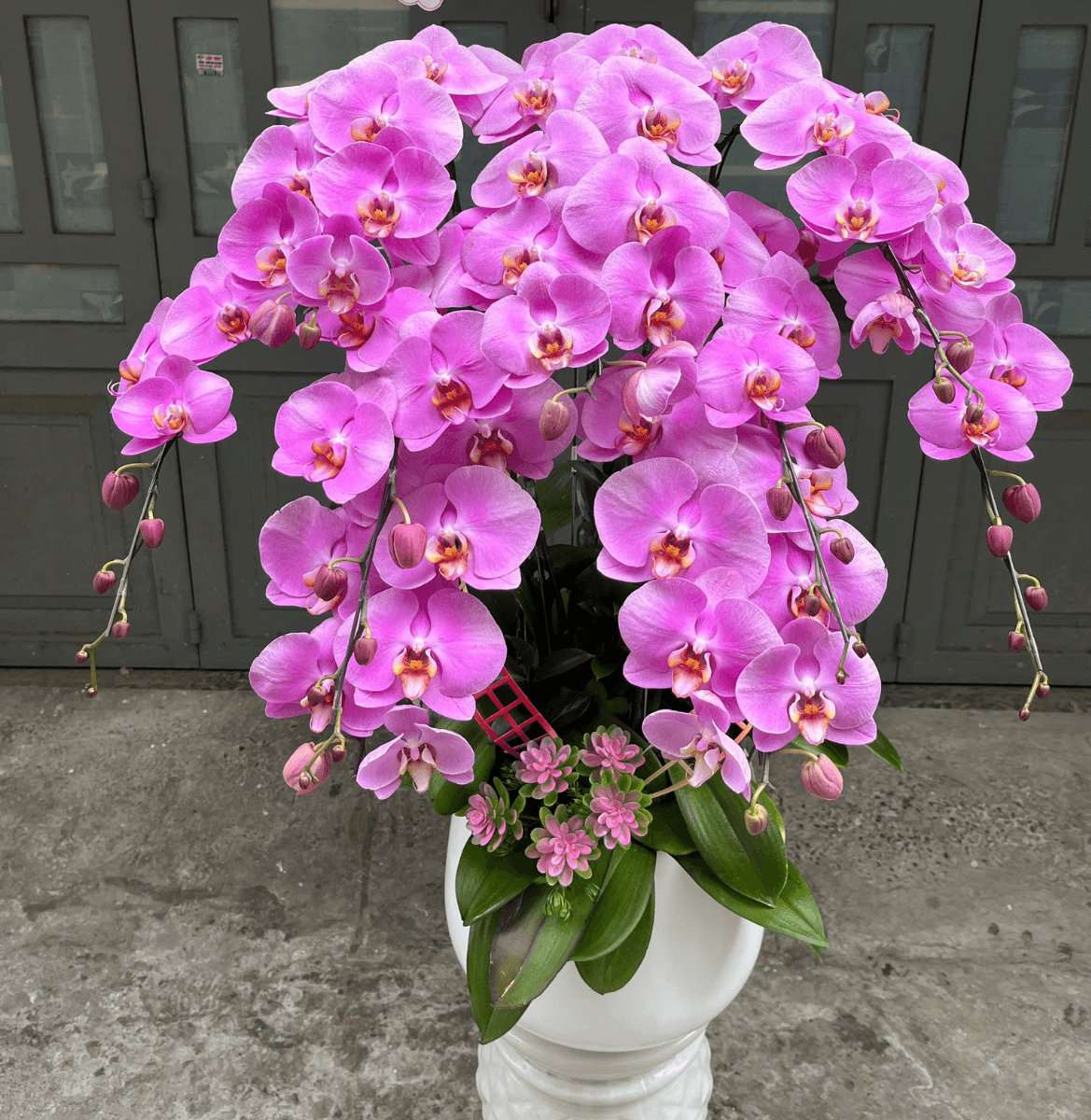 Chậu lan hồ điệp hồng S59 9 cành mang đến cảm giác gọn gàng nhưng vẫn đủ độ nổi bật nhờ cách sắp xếp khéo léo và màu sắc rõ nét. Với chiều cao khoảng 1m, đây là thiết kế phù hợp cho bàn lễ tân, quầy tiếp khách hoặc những không gian cần điểm nhấn vừa phải nhưng vẫn giữ được sự trang nhã.