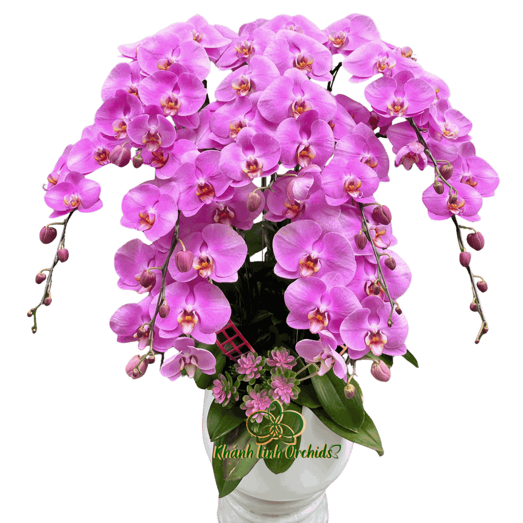 Về ý nghĩa, lan hồ điệp hồng S59 tượng trưng cho sự nhẹ nhàng, tình cảm và những điều tốt đẹp trong các mối quan hệ. Màu hồng mang lại cảm giác gần gũi, dễ chịu, phù hợp cho cả mục đích trang trí lẫn làm quà tặng. Với 9 cành lan, chậu hoa còn thể hiện sự trọn vẹn, bền lâu và ổn định theo thời gian.