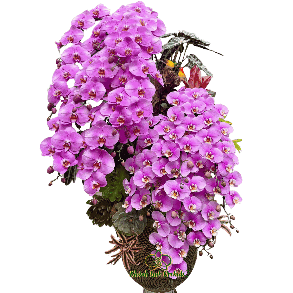 Chậu hoa Lan Hồ Điệp Hồng Tiểu Cảnh 18 Cành không chỉ cuốn hút bởi vẻ ngoài rực rỡ và mềm mại mà còn ẩn chứa nhiều tầng ý nghĩa sâu sắc. Sự kết hợp giữa hai sắc hồng – hồng đậm thể hiện tình yêu nồng nàn, chân thành, còn hồng nhạt tượng trưng cho sự dịu dàng, thuần khiết – tạo nên một tổng thể hài hòa như lời chúc phúc cho những mối quan hệ bền vững, thăng hoa theo thời gian.
