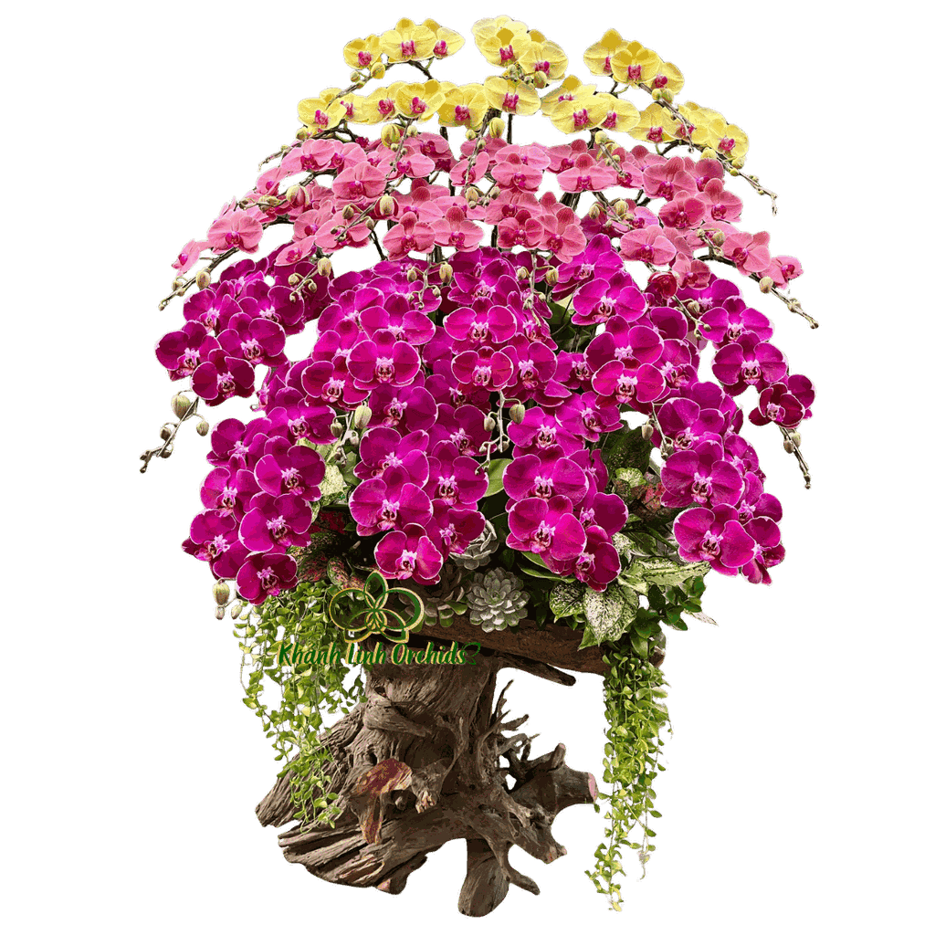 Lan hồ điệp lũa gỗ phối 3 màu 28 cành là một thiết kế mang đậm dấu ấn thẩm mỹ, kết hợp giữa vẻ đẹp tự nhiên và sự tinh tế trong cách sắp đặt. Tổng thể chậu lan tạo cảm giác hài hòa, sang trọng và có chiều sâu, phù hợp để trưng bày trong nhiều không gian khác nhau như phòng khách, sảnh công ty hoặc làm quà tặng trong các dịp quan trọng.