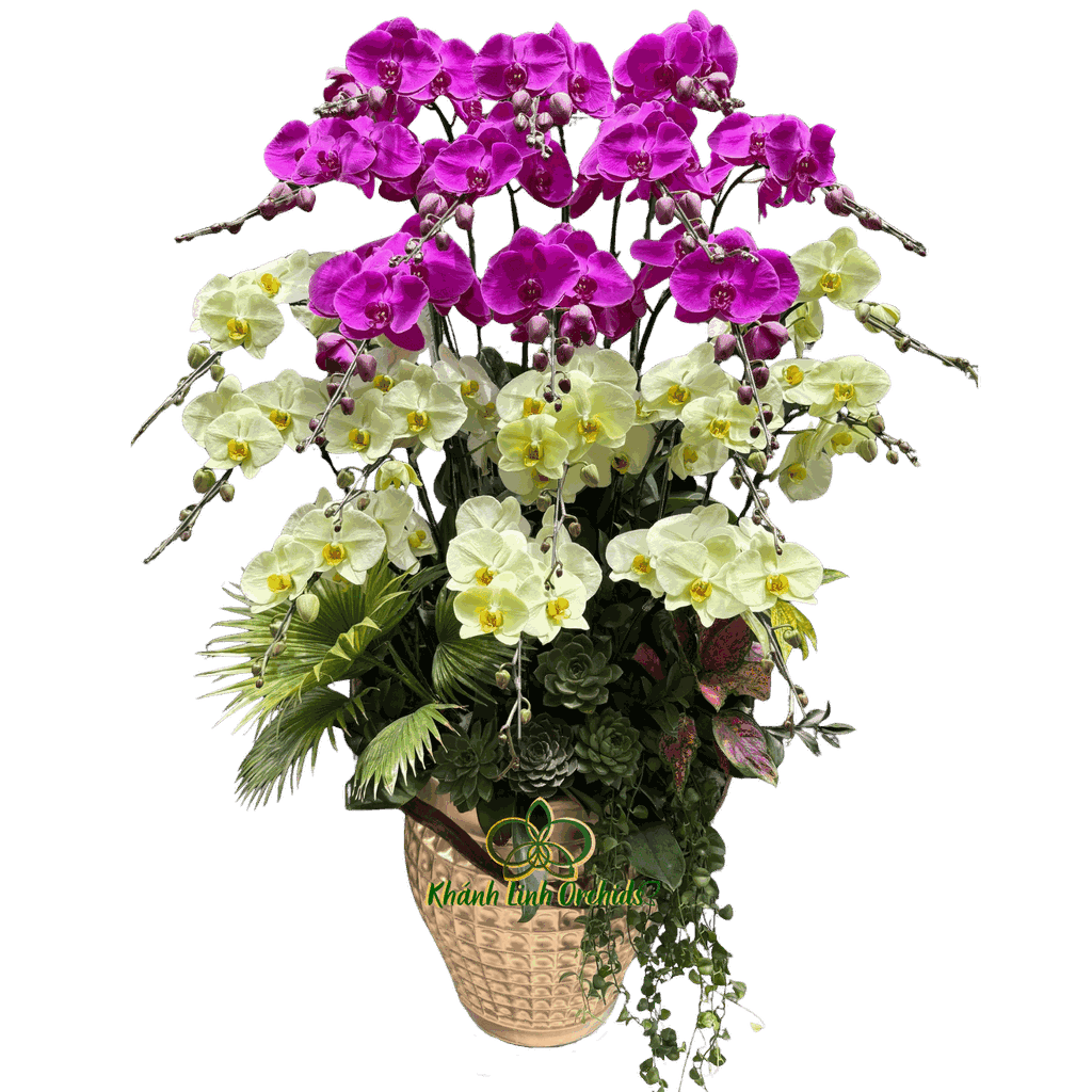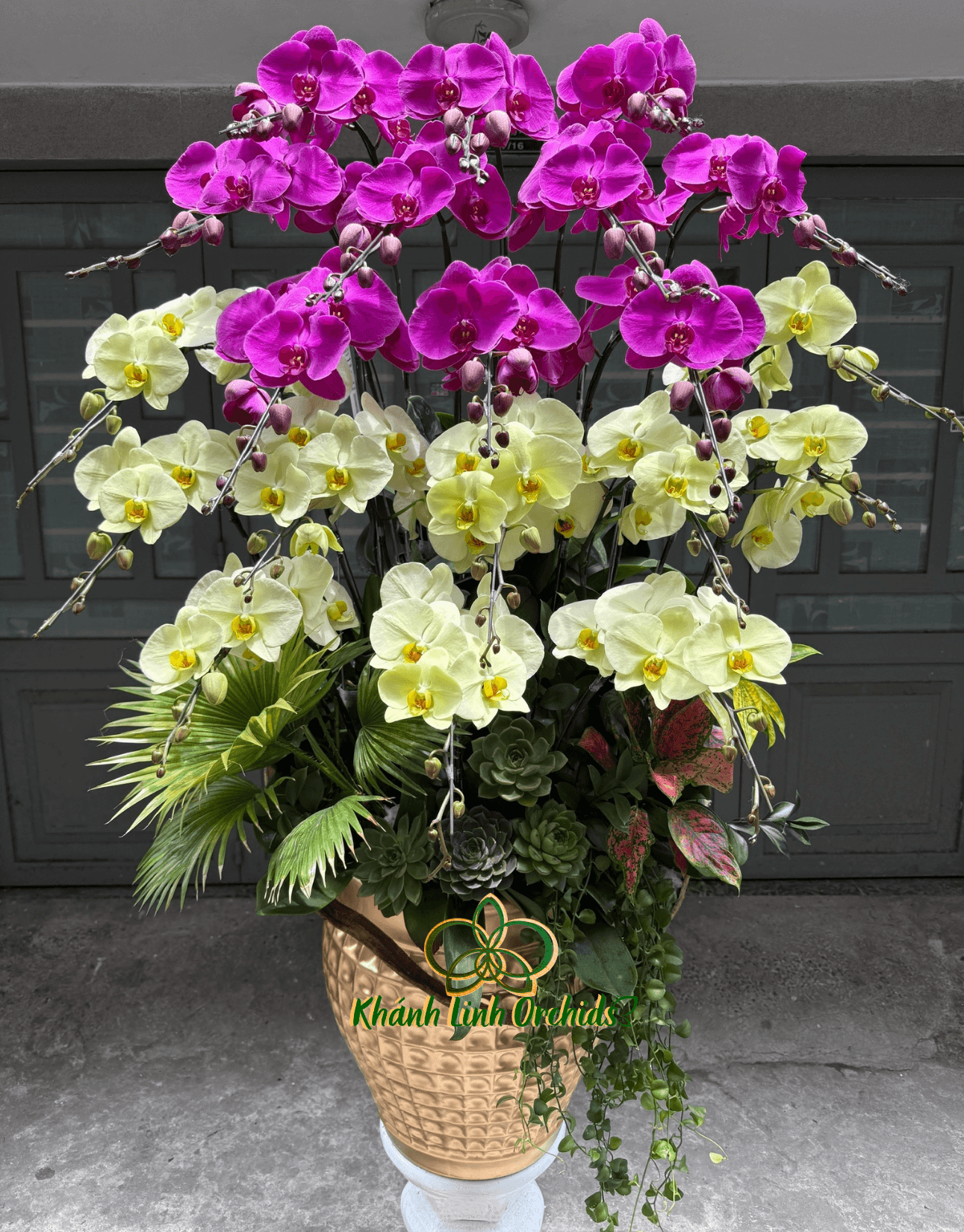 Chậu hoa lan hồ điệp phối 2 màu xanh bơ – tím 20 cành là sự lựa chọn hoàn hảo cho những ai yêu thích sự sang trọng và độc đáo. Sự kết hợp tinh tế giữa sắc xanh bơ thanh thoát và tím rực rỡ mang đến vẻ đẹp nổi bật, tràn đầy năng lượng và may mắn.