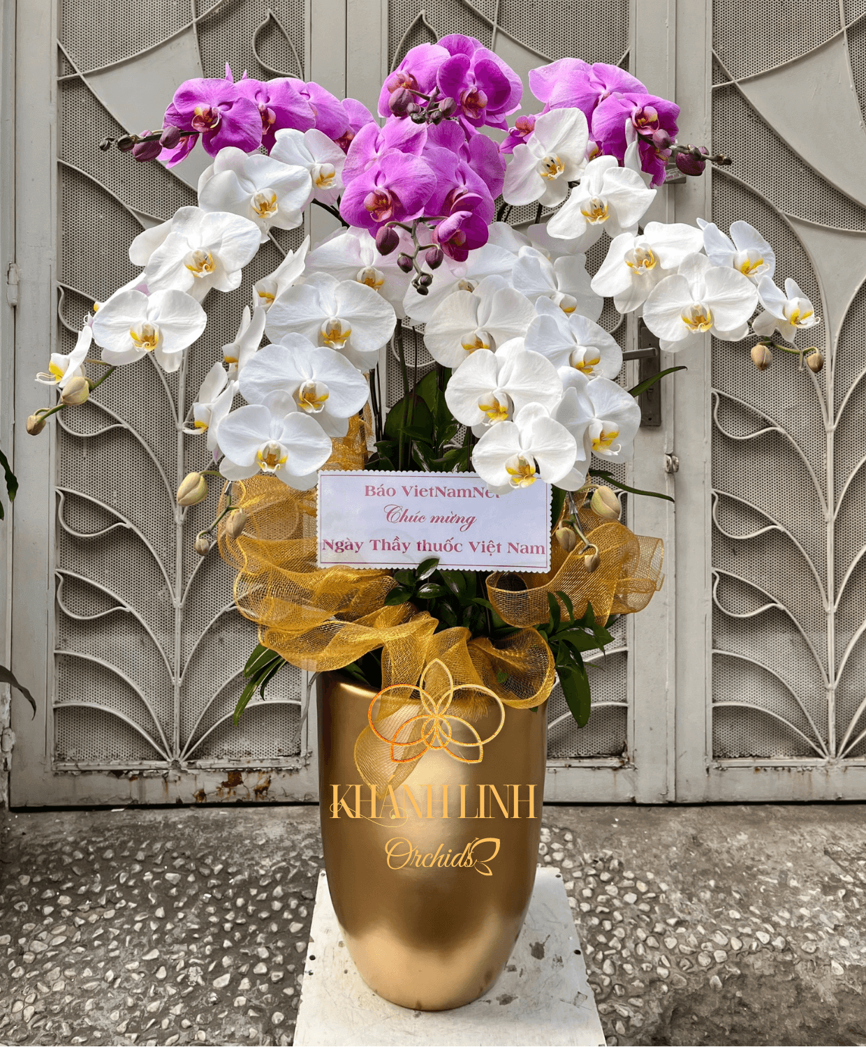 Mỗi cành hoa, mỗi chi tiết đều phản ánh sự tinh tế và sự quan tâm tỉ mỉ từ người tạo ra. Cánh hoa mềm mại, nhẹ nhàng lay động trong làn gió, tạo nên một khung cảnh huyền diệu và bình yên. Chậu Lan Hồ Điệp Nhị Sắc 8 Cành Hồng Trắng không chỉ là một tác phẩm tự nhiên tuyệt vời mà còn là biểu tượng của tình yêu và sự hoàn hảo.