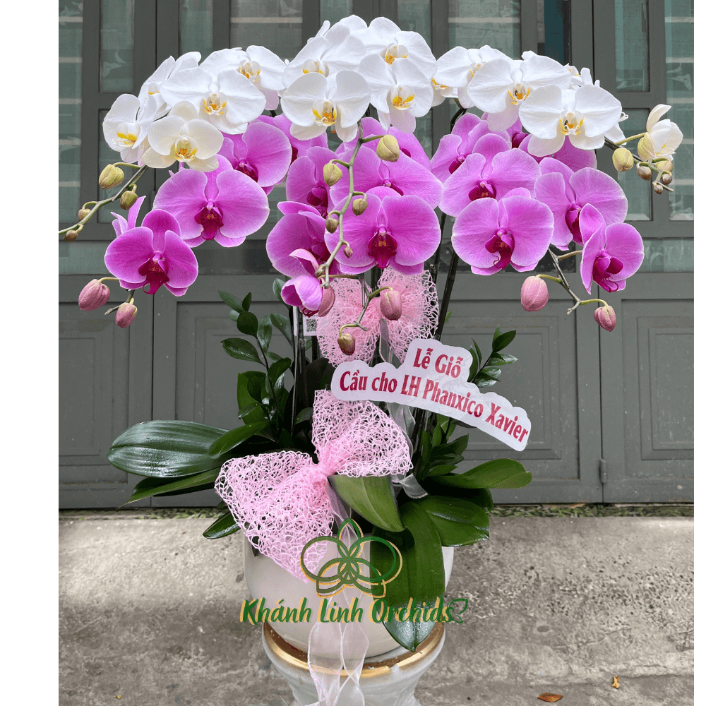 Chậu Lan Hồ Điệp phối màu trắng và hồng không chỉ làm đẹp cho không gian mà còn truyền tải sự tinh tế, dịu dàng. Vẻ đẹp tự nhiên, không quá cầu kỳ nhưng vẫn toát lên sự sang trọng nhẹ nhàng, phù hợp với nhiều không gian khác nhau và mang lại cảm giác gần gũi, dễ chịu cho người thưởng thức.