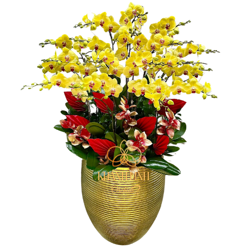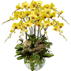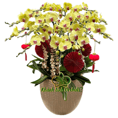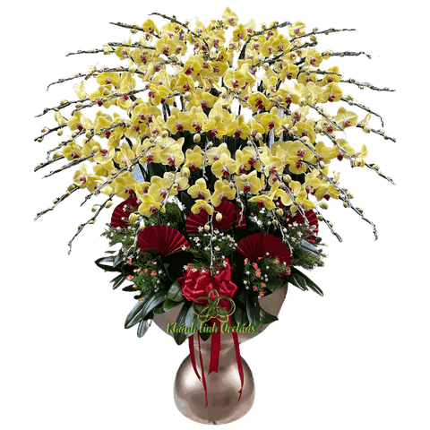 - Hoa lan hồ điệp vàng: Tượng trưng cho sự giàu có, tài lộc, rất phù hợp làm quà khai trương. Với màu sắc tươi sáng, lan hồ điệp vàng luôn là lựa chọn hàng đầu của khách hàng khi chọn lan hồ điệp tặng khai trương.