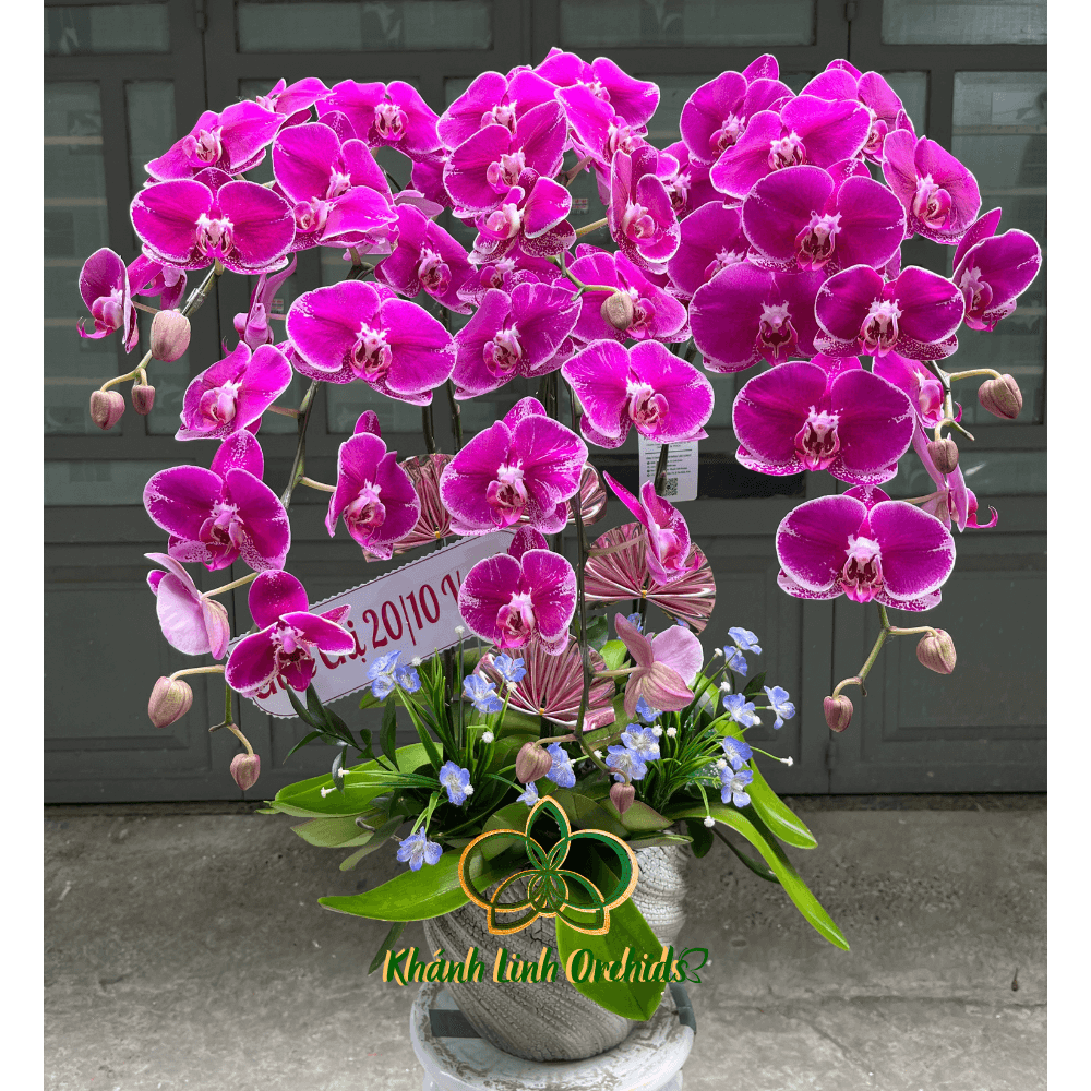 Chậu hoa Lan Hồ Điệp tím đậm với 6 cành nổi bật mang đến vẻ đẹp quyến rũ và độc đáo. Màu tím đậm của hoa tạo nên sự huyền bí và sang trọng, điểm xuyến viền trắng bao quanh từng cánh hoa càng làm tôn lên vẻ đẹp tinh tế, độc đáo.