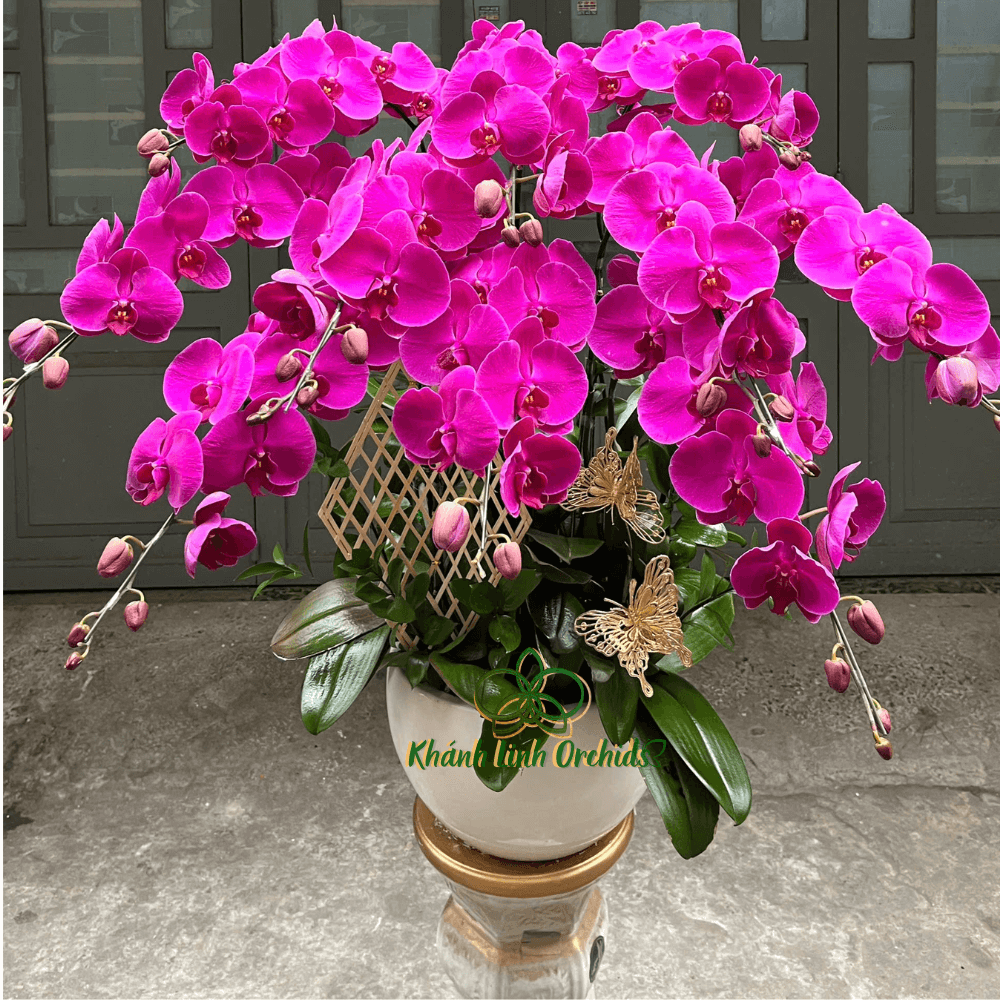 Chậu Lan Hồ Điệp Tím Đậm Bông To 10 Cành không chỉ là một món quà sang trọng, thể hiện sự tôn trọng và chúc phúc, mà còn là lựa chọn hoàn hảo để trang trí không gian sống, làm việc, giúp mang lại sự may mắn, thịnh vượng và tinh thần thư thái. Với sự kết hợp hài hòa giữa hoa lan tím bông to, chậu trắng thanh lịch, tre đan nghệ thuật và bướm bay lượn, chậu hoa này chắc chắn sẽ trở thành điểm nhấn ấn tượng, thu hút và đầy ý nghĩa trong mọi không gian.