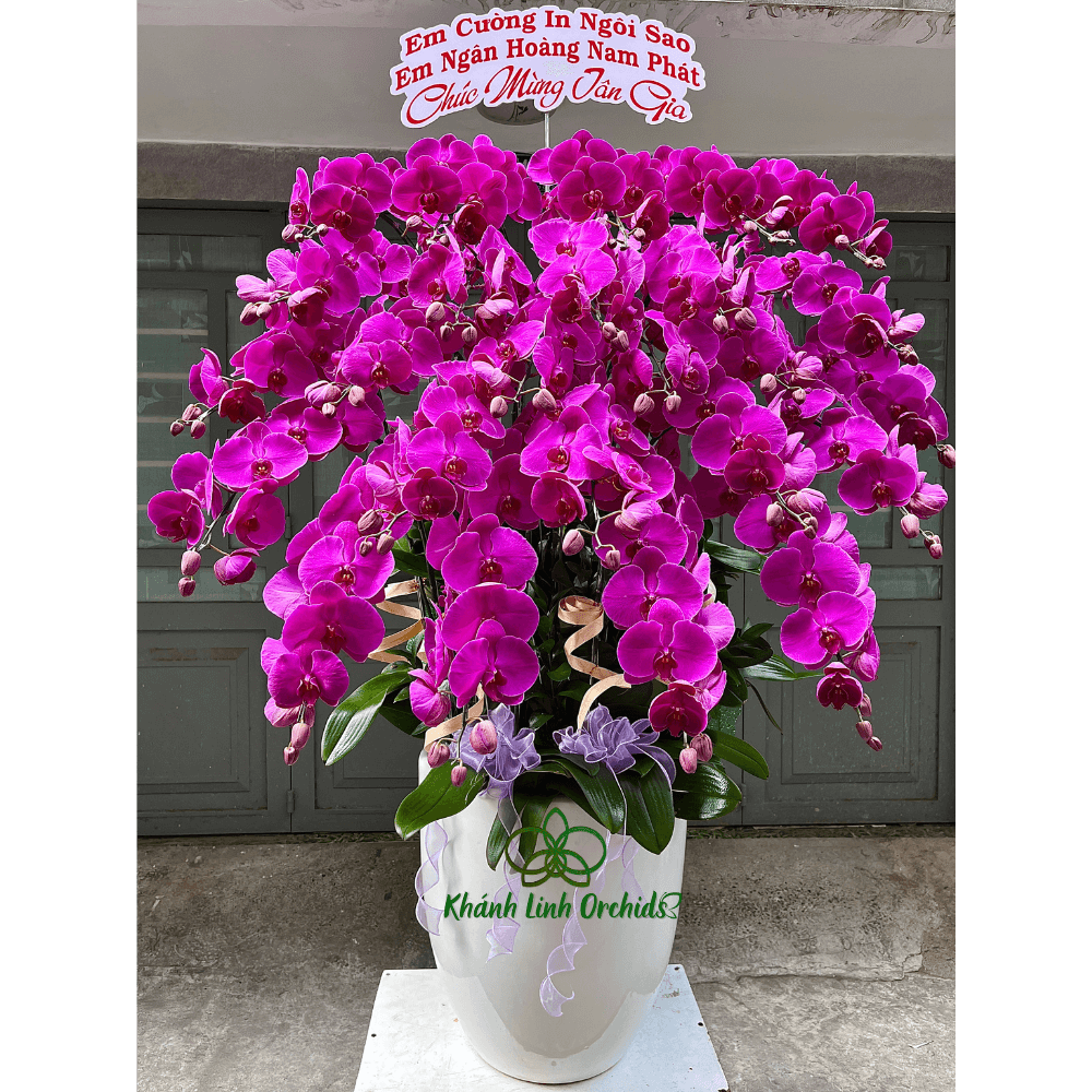 Với 25 cành lan lớn đồng đều, chậu Lan Hồ Điệp tím đậm không chỉ gây ấn tượng bởi kích thước mà còn bởi vẻ đẹp tinh tế và đẳng cấp, phù hợp để trang trí cho những không gian sang trọng như sảnh lớn, phòng khách, hay làm món quà đầy giá trị cho những dịp trọng đại.