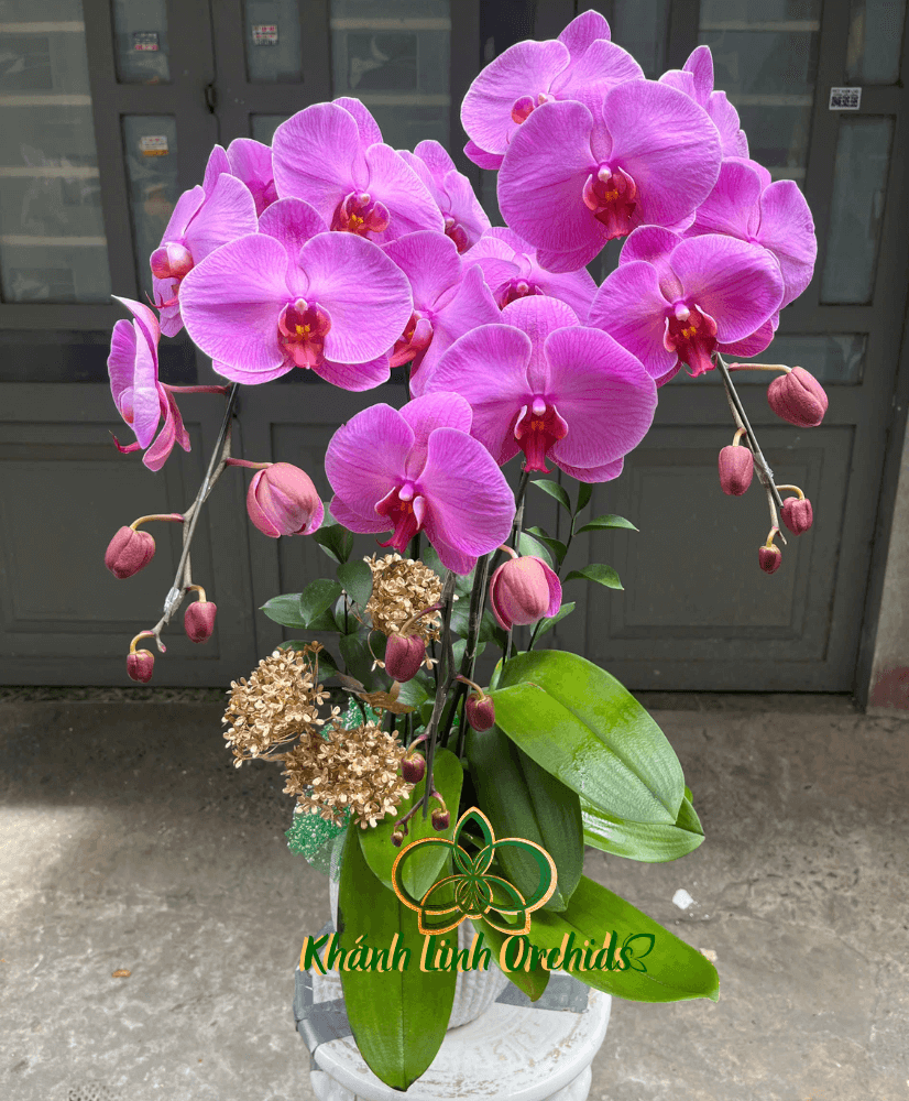 Chậu hoa Lan Hồ Điệp Tím Ruốc 3 Cành sở hữu sắc tím đầy bí ẩn, huyền bí, toát lên vẻ đẹp sang trọng và quyến rũ. Dù chỉ có 3 cành hoa, nhưng mỗi cành đều dài, mạnh mẽ với những bông hoa to, màu tím sâu lắng, khiến chậu hoa trở thành điểm nhấn nổi bật trong không gian. Sự kết hợp giữa sắc tím huyền bí và những đường nét thanh thoát của cành hoa mang đến một vẻ đẹp thanh lịch nhưng đầy lôi cuốn.