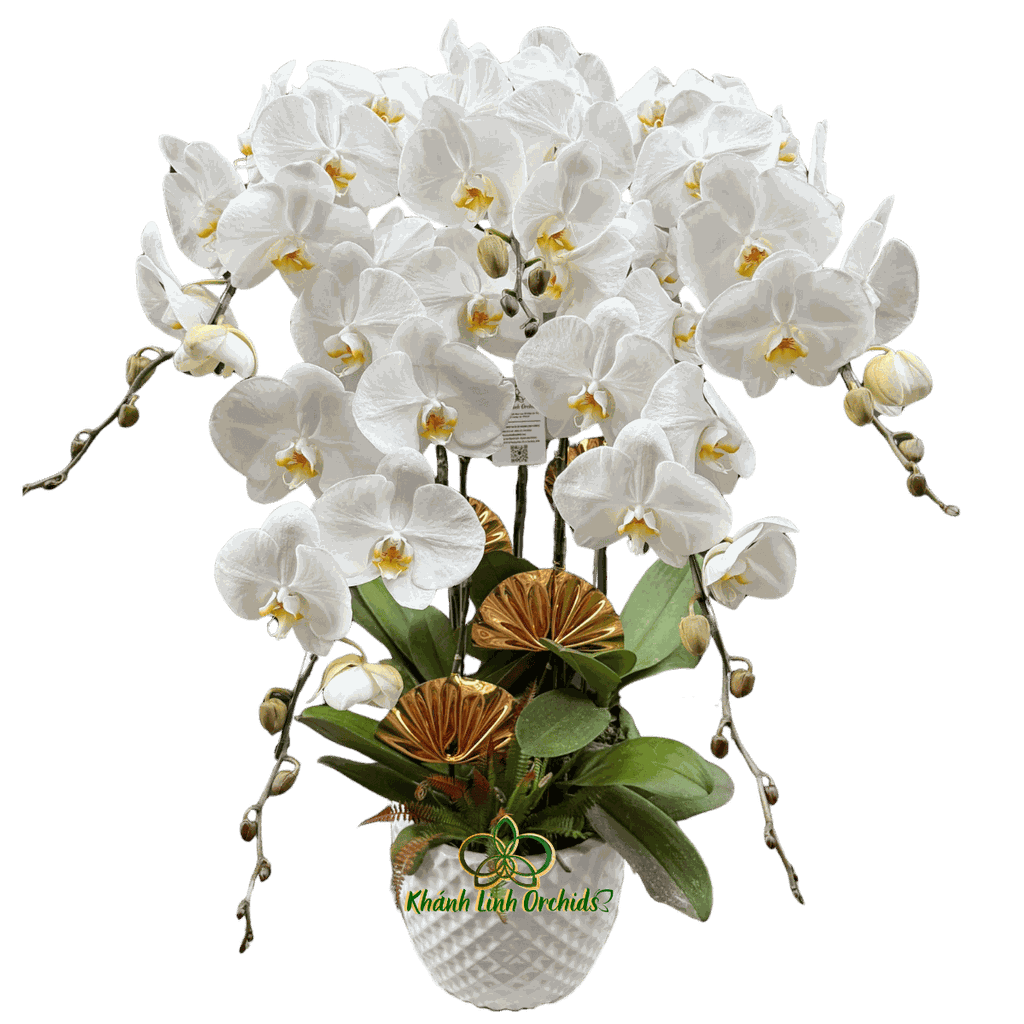Về ý nghĩa, lan hồ điệp trắng tượng trưng cho sự thuần khiết, khởi đầu mới và những điều tốt đẹp bền lâu. Số 5 cành còn mang ý nghĩa cân bằng, hài hòa và đủ đầy trong cuộc sống. Chậu lan hồ điệp trắng 5 cành không chỉ là điểm nhấn trang trí tinh tế mà còn là món quà ý nghĩa, gửi gắm lời chúc bình an, thành công và mọi sự hanh thông đến người nhận.
