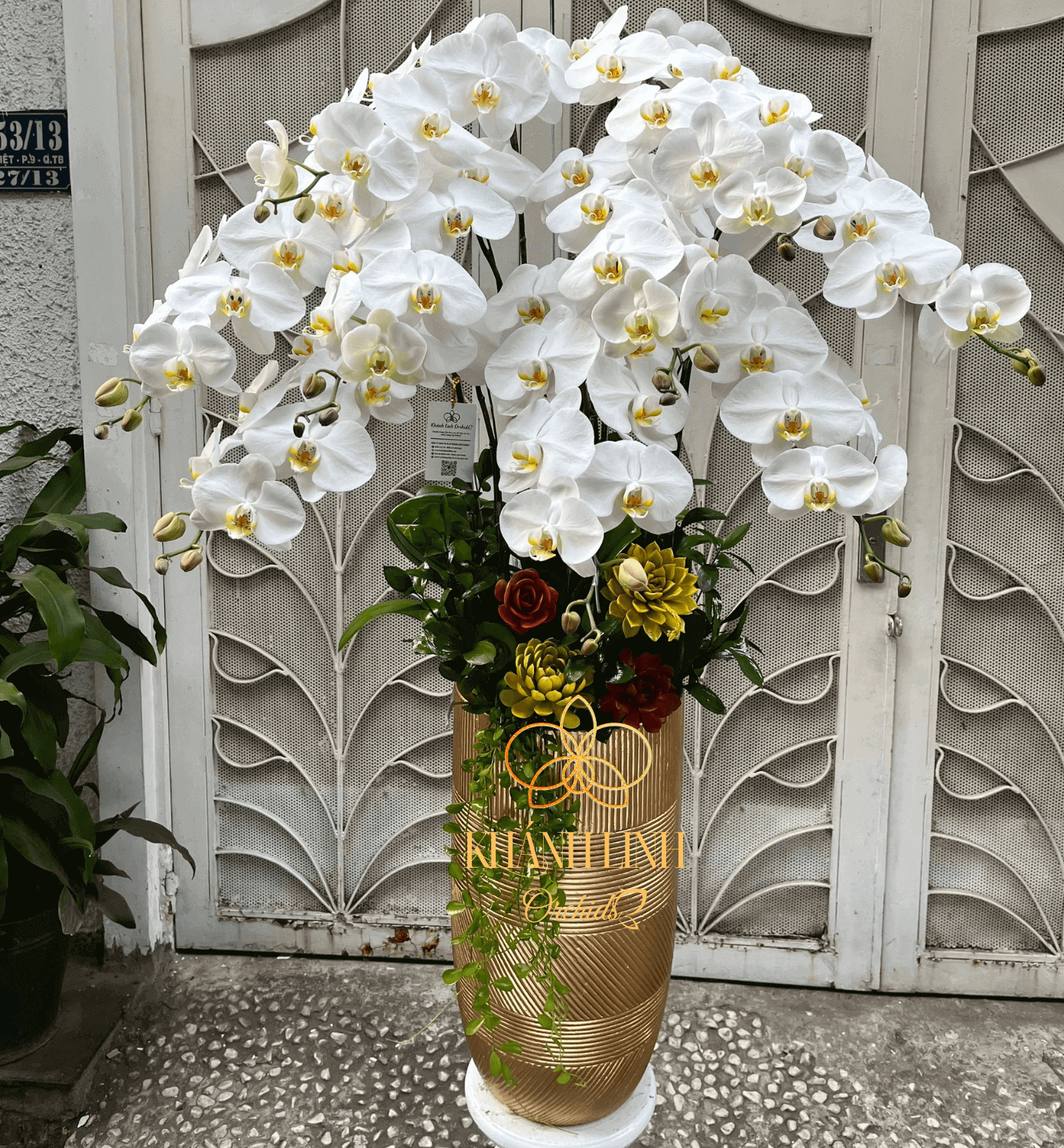 Chậu lan hồ điệp trắng 9 cành kết hợp trang trí sen đá không chỉ là một sản phẩm trang trí mà còn là biểu tượng của sự thanh nhã và sự tinh tế trong thiên nhiên. Đặt nó trong không gian sống của bạn, bạn sẽ cảm nhận được sự thanh bình lan tỏa từ mỗi bông hoa lan hồ điệp và sen đá.