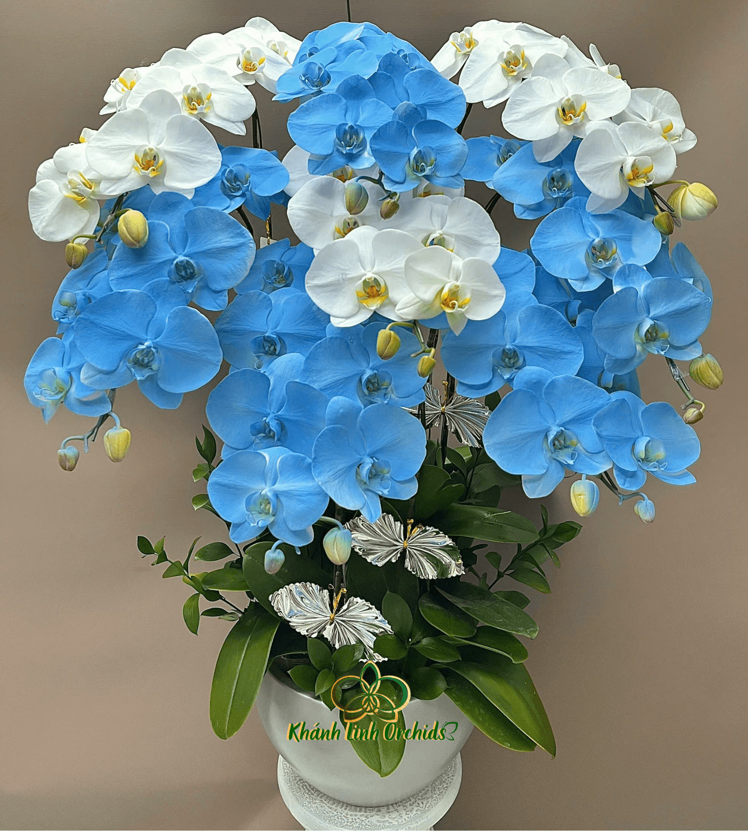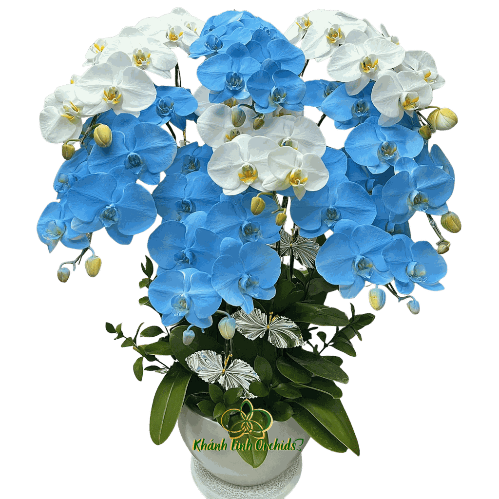 Tại Hoa lan Khánh Linh, mỗi chậu hoa đều được thiết kế tỉ mỉ, giao tận nơi đúng hẹn, đảm bảo tính thẩm mỹ và chất lượng. Hãy chọn ngay chậu lan hồ điệp phối xanh biển pastel để làm đẹp không gian sống và mang lại may mắn cho người thân, bạn bè.