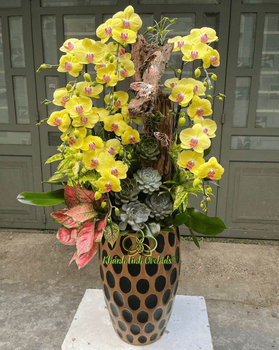 Với thiết kế cân đối và màu sắc rực rỡ, Lan Hồ Điệp Vàng 10 Cành Tiểu Cảnh thích hợp trưng bày tại sảnh lớn, văn phòng công ty, phòng khách hoặc không gian sang trọng. Đây cũng là món quà hoàn hảo để gửi tặng trong dịp khai trương, tân gia, lễ Tết hay những sự kiện quan trọng, thay cho lời chúc may mắn, hanh thông và thành công viên mãn.