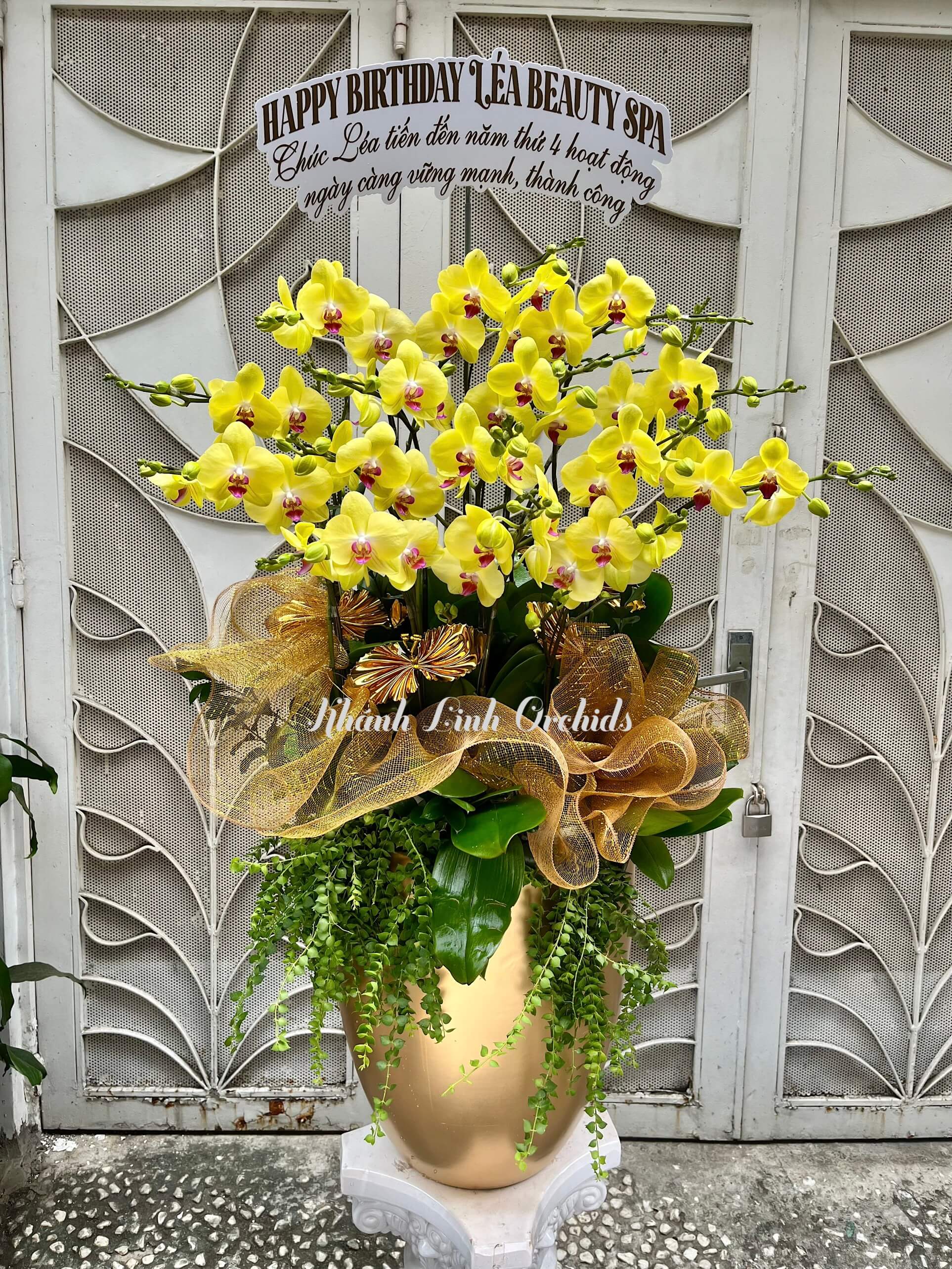 Chậu lan hồ điệp vàng 15 cành là một tuyệt phẩm của thiên nhiên, nơi vẻ đẹp tinh tế và sức sống hòa quyện một cách tuyệt vời. Hãy cùng khám phá sự quý phái và rực rỡ của chậu hoa này qua mô tả sau đây: Chậu lan hồ điệp vàng 15 cành là một biểu tượng của sự sang trọng và lấp lánh, như những viên ngọc quý mà thiên nhiên tặng cho chúng ta. Mỗi cành hoa mở ra như là những tia nắng vàng lấp lánh, tạo nên một bức tranh sống động và tràn ngập sức sống. Sắc vàng của hoa lan hồ điệp như là ánh sáng mặt trời mềm mại, tỏa sáng trong không gian xung quanh. Mỗi đóa hoa rực rỡ, đầy sức sống, như là những tia lửa nhỏ đang cháy bùng trong bức tranh thiên nhiên tinh tế. Hương thơm ngọt ngào từ chậu hoa vàng là sự kết hợp hoàn hảo giữa hương hoa nhẹ nhàng và hương ngọt ngào, lan tỏa một mùi thơm dễ chịu, làm cho không gian xung quanh trở nên tinh tế và tràn ngập hương quyến rũ.