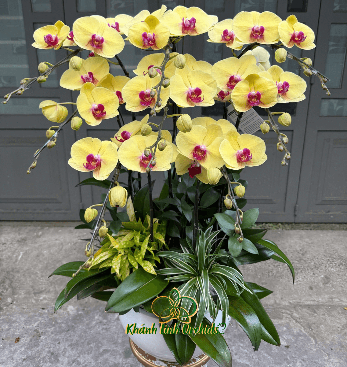 Chậu lan hồ điệp vàng 8 cành mang đến một vẻ đẹp rực rỡ, đầy năng lượng và sang trọng. Sắc vàng tươi sáng không chỉ thu hút ánh nhìn ngay từ lần đầu chạm mắt, mà còn mang theo thông điệp của sự phát tài, thịnh vượng và thành công rực rỡ. Trong phong thủy, hoa lan vàng là biểu tượng cho sự may mắn, hưng vượng và khởi đầu suôn sẻ, rất thích hợp để trưng bày trong không gian kinh doanh hoặc làm quà tặng chúc mừng.