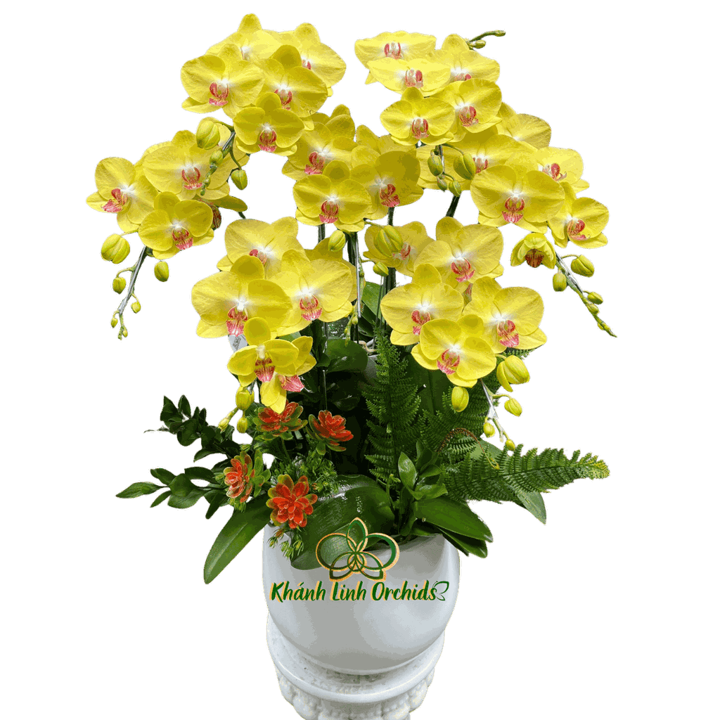 Với màu sắc tươi sáng, bố cục hài hòa và ý nghĩa tích cực, chậu lan hồ điệp vàng A42 7 cành là lựa chọn phù hợp để trang trí không gian sống, bàn làm việc, quầy lễ tân hoặc làm quà tặng trong các dịp chúc mừng, tân gia, khai trương hoặc những dịp đặc biệt. Chậu lan mang đến giá trị thẩm mỹ cùng thông điệp về tài lộc, niềm vui và sự phát triển lâu dài. 🌼