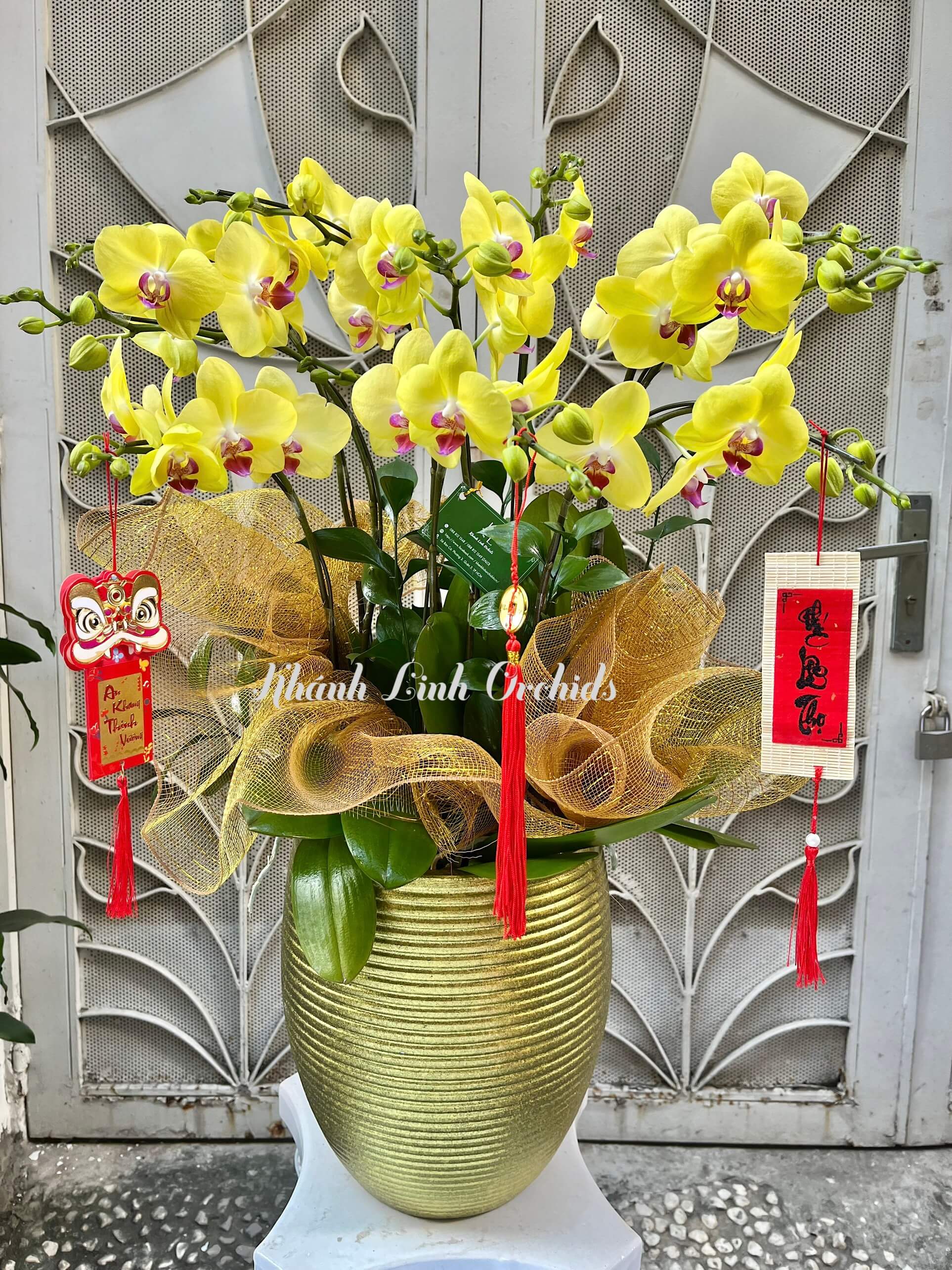 Mỗi cành hoa nở tươi tắn và rực rỡ, tạo nên một hình ảnh hoa lan tràn ngập sức sống. Sự tươi mới và trọn vẹn của hoa mang đến cảm giác vui tươi và lạc quan. Mỗi đóa hoa và lá cây được chăm sóc kỹ lưỡng, thể hiện sự chất lượng và tinh tế. Sự tỉ mỉ trong từng chi tiết làm cho chậu hoa trở nên đẹp mắt và độc đáo. Tên gọi "Xuân Yêu Thương" không chỉ là tên của chậu hoa mà còn là lời chúc mừng năm mới đầy ý nghĩa. Chậu hoa này là biểu tượng của sự yêu thương và hạnh phúc trong mùa Xuân. Chậu Hoa Lan Hồ Điệp Vàng Chanh 8 Cành - Xuân Yêu Thương không chỉ là vật trang trí, mà còn là điểm nhấn tràn ngập sự ấm áp và yêu thương, tạo nên không khí tràn ngập sự tươi mới và hạnh phúc.