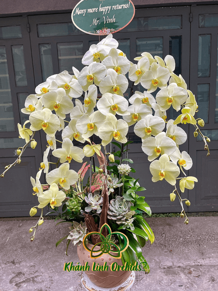 Với sự kết hợp tinh tế từ sắc xanh thanh mát của Lan Hồ Điệp, chậu hoa tạo nên một không gian nhẹ nhàng, bình yên nhưng không kém phần sang trọng, rất phù hợp để tôn lên vẻ đẹp trang nhã trong bất kỳ không gian nào, từ phòng khách đến nơi làm việc hay khu vực trưng bày.